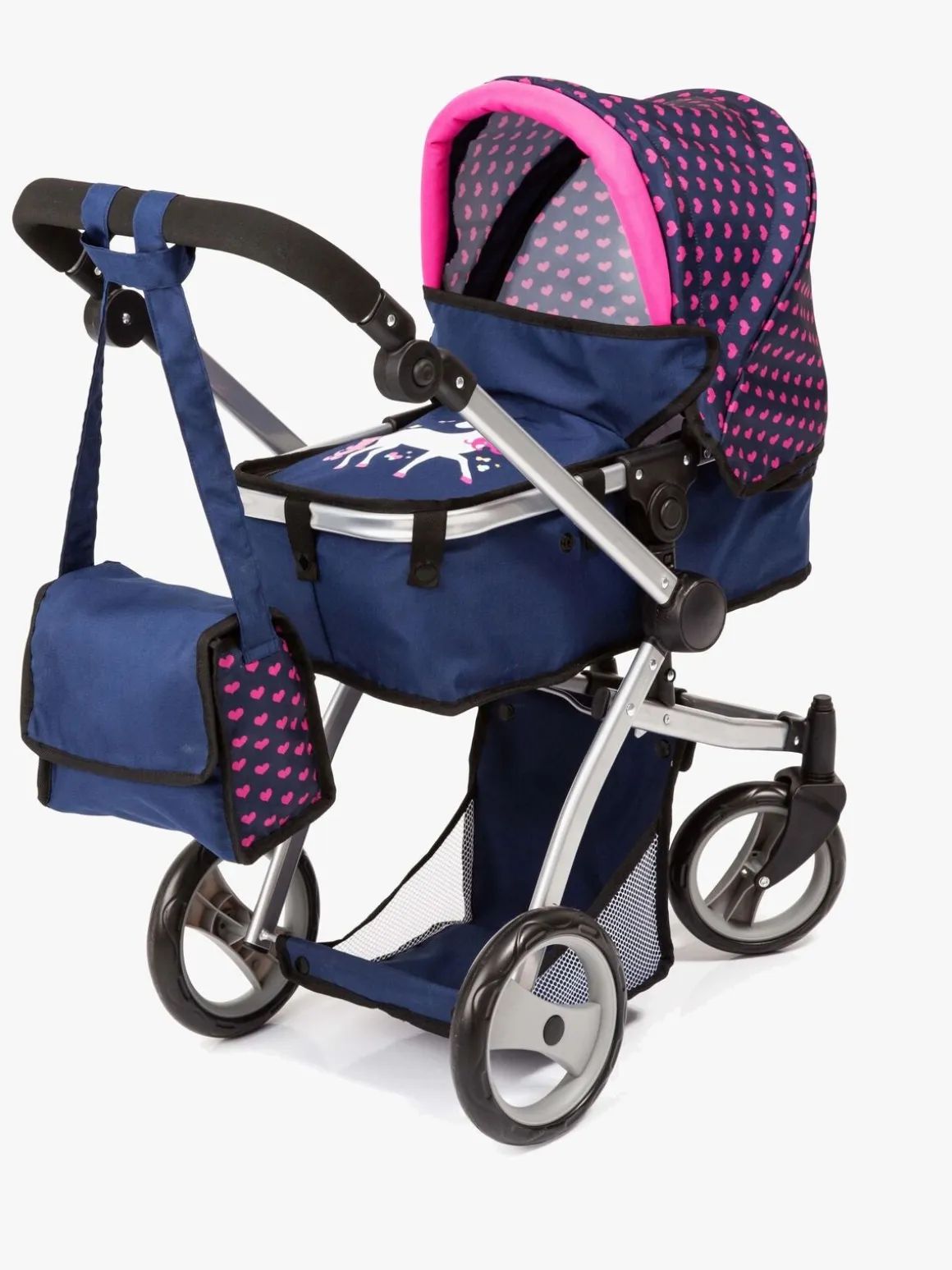 – Indeholder: 1 dukkevogn, 1 dukkeseng, 1 pusletaske, 1 sovepose, 1 sutteflaske, 1 sut, 1 tallerken, 2 bestik, 1 babyplejesæt.