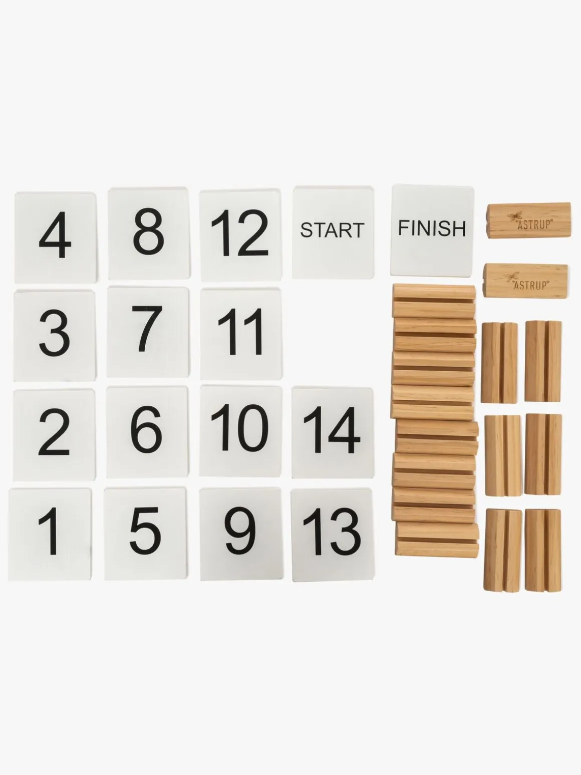 – Hver markør er dobbeltsidet med bogstaver (A-F) på den ene side og tal (1-15) på den anden.