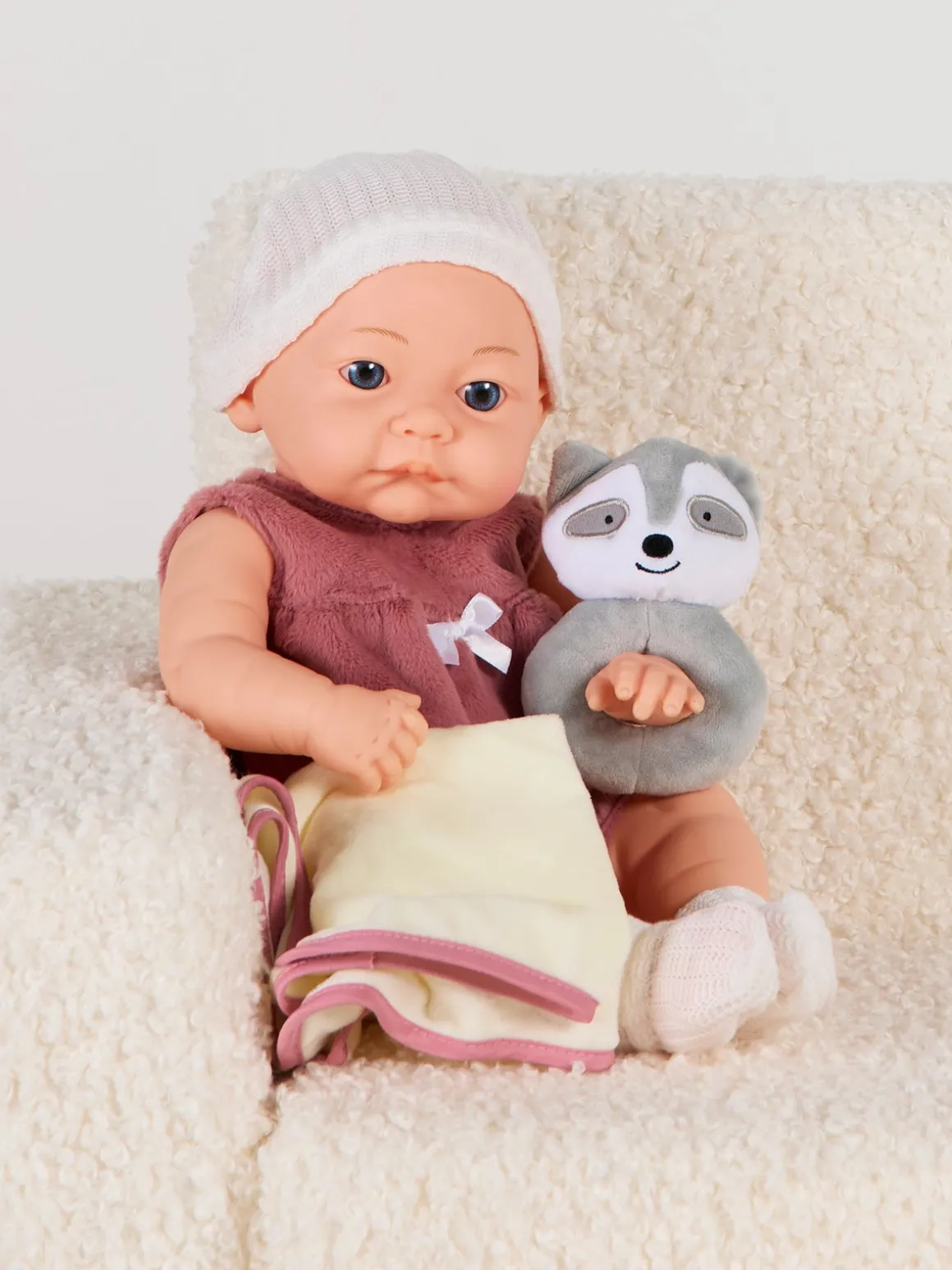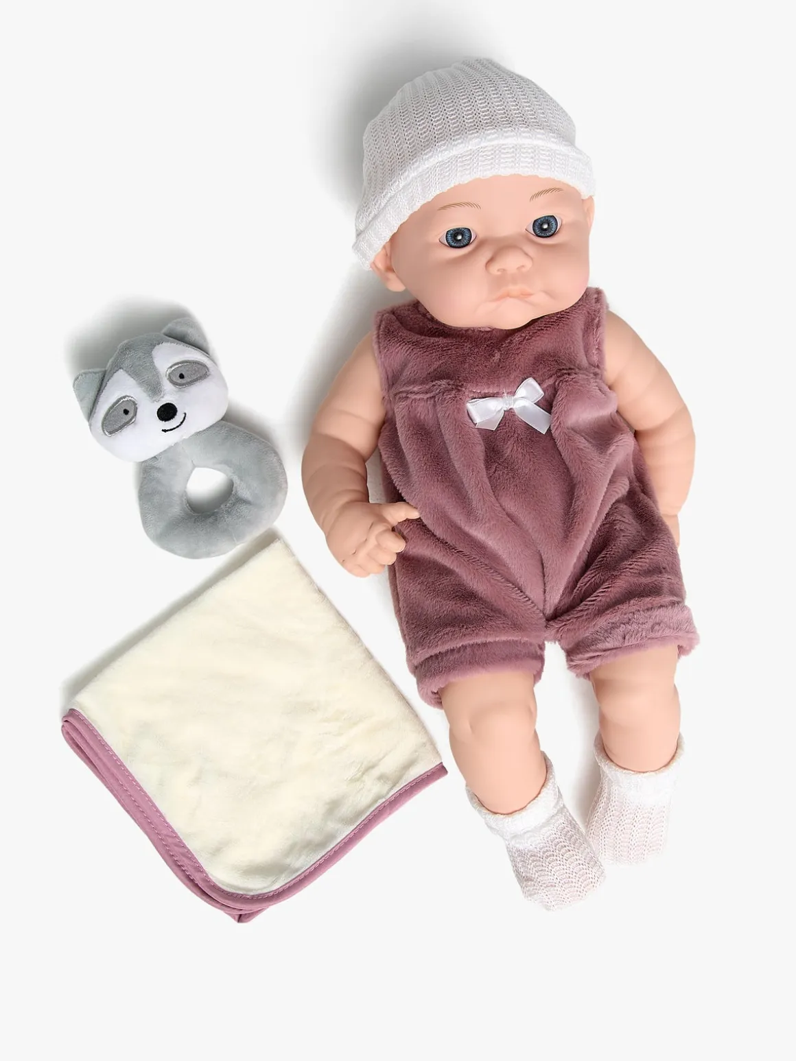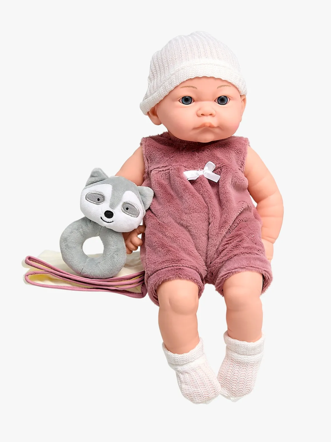 – Indeholder: 1 dukke, 1 rangle, 1 nusseklud.