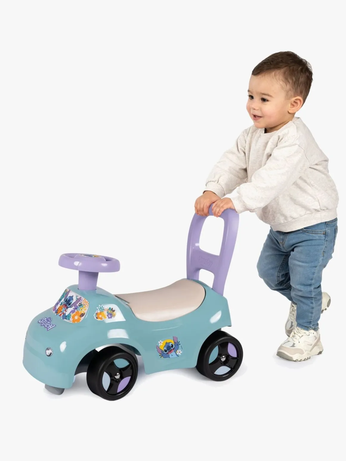 – Kan bruges som både gåbil og gåvogn.