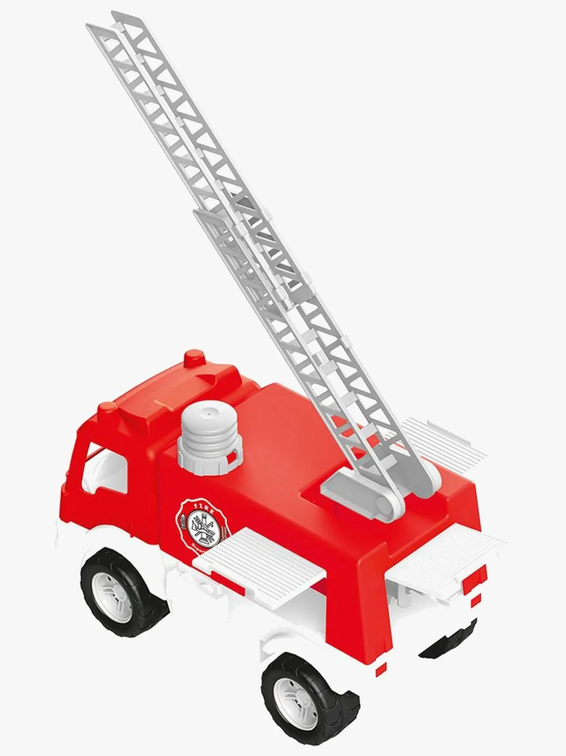 Brandbilen har en rigtig vandpumpe og tre låger, der kan åbnes.