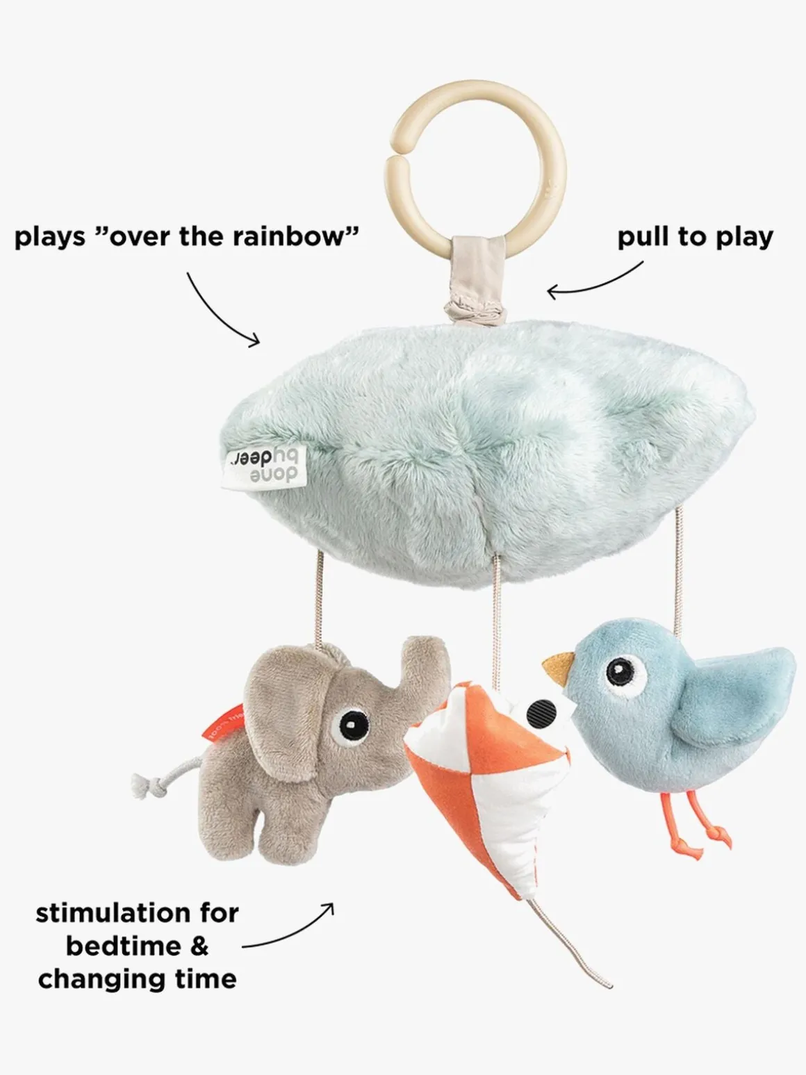 – Perfekt til at hænge over tremmesengen eller barnevognen.