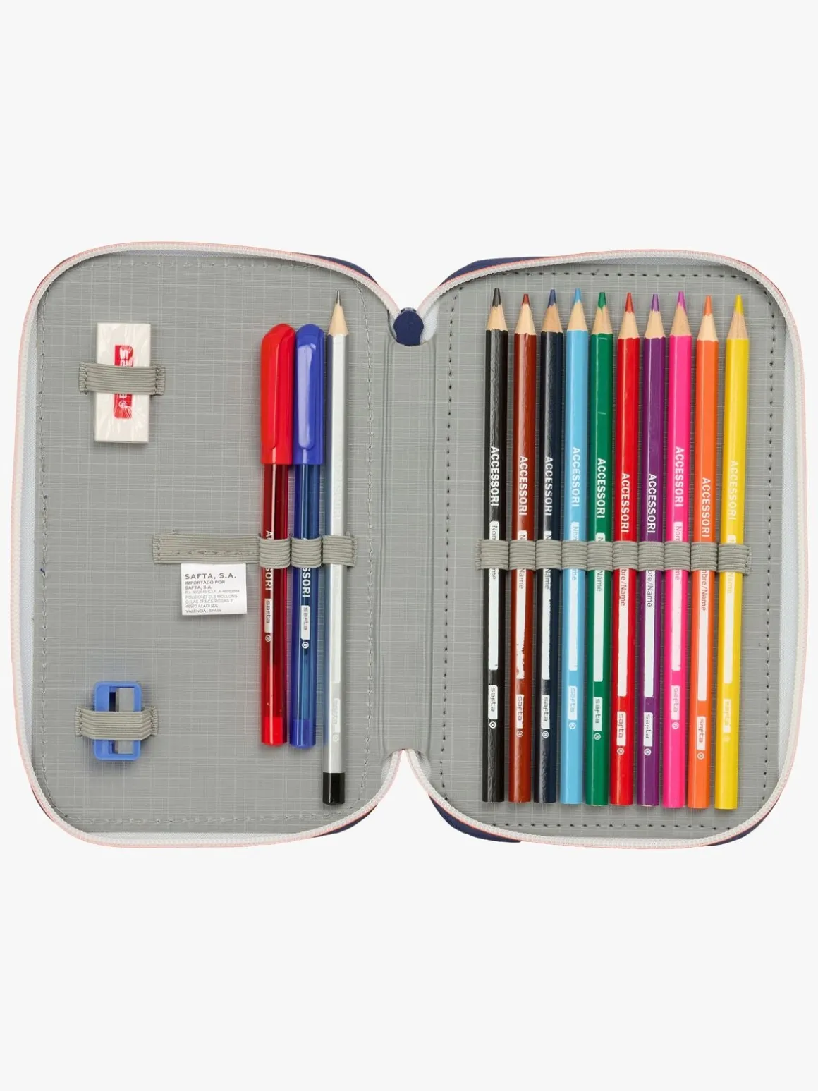 – Indeholder: 1 penalhus, 10 farveblyanter, 14 tusser, 1 viskelæder, 1 blyantspidser, 2 kuglepenne, 1 blyant.