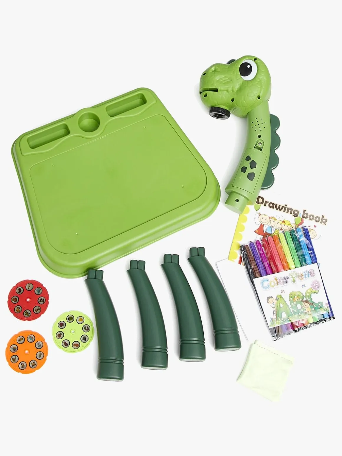 – Indeholder: 1 tegneblok, 3 projektionsskiver, 12 vandbaserede tusser, 24 mønstre, 1 aftørringsklud.