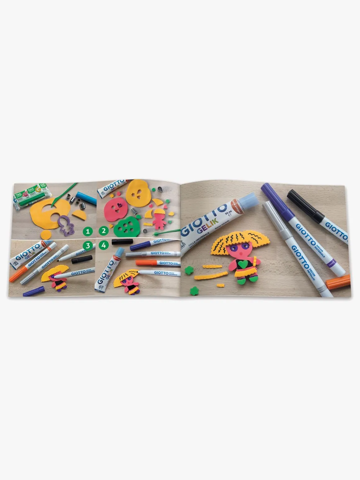 – Indeholder: 4 filttusser, 1 kagerulle, 1 plastkniv, 4 former, 1 lim, 1 pensel.