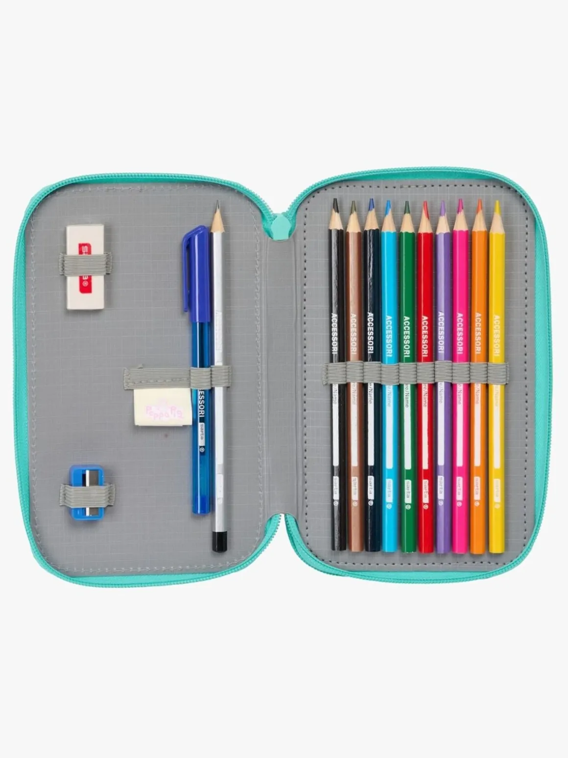 – Indeholder: 1 penalhus, 10 farveblyanter, 14 tusser, 1 kuglepen, 1 blyant, 1 viskelæder, 1 blyantspidser.