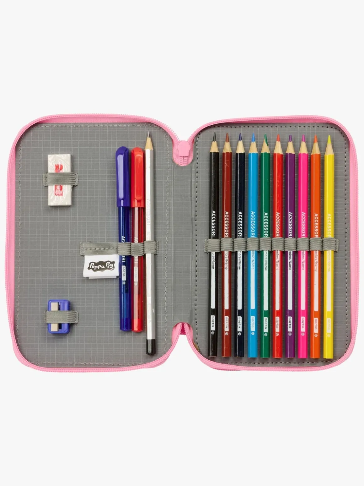 – Indeholder: 1 penalhus, 10 farveblyanter, 14 tusser, 1 viskelæder, 1 blyantspidser, 2 kuglepenne, 1 blyant.