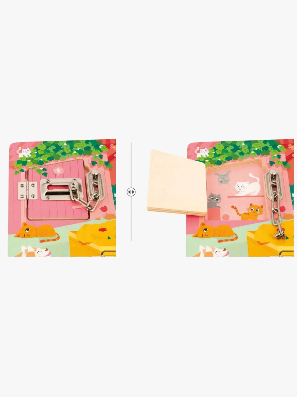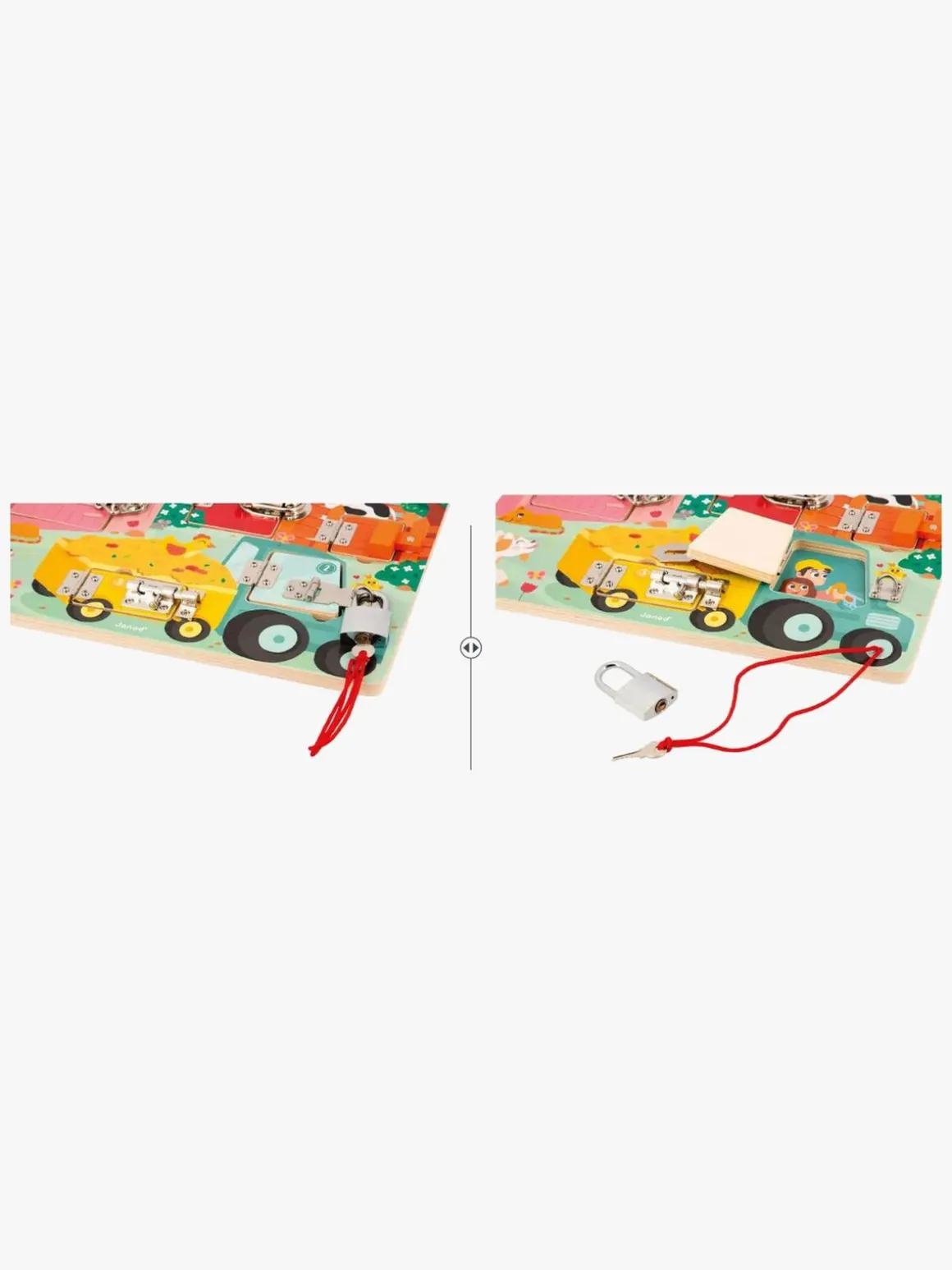 – Nøgle, haspe, dørkæde, spænde og lås.