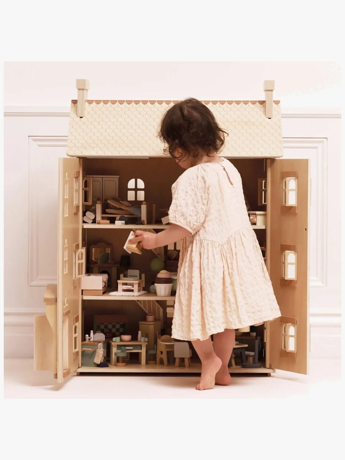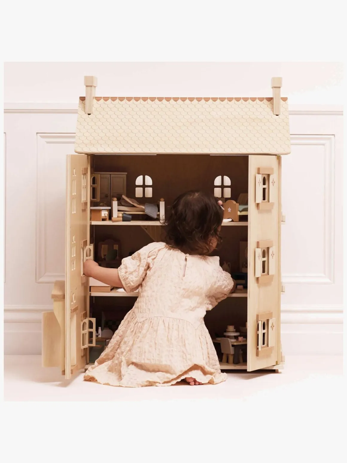 – Åbn og luk dukkehuset på forsiden.