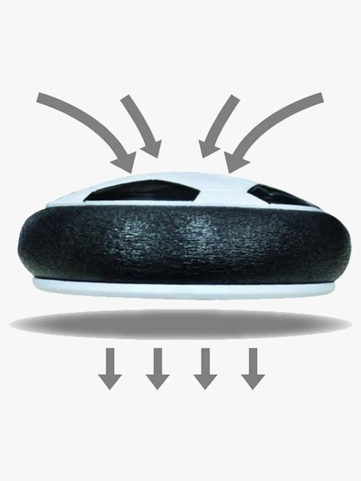 – Hovercraft-effekt: luft strømmer ud fra discen.