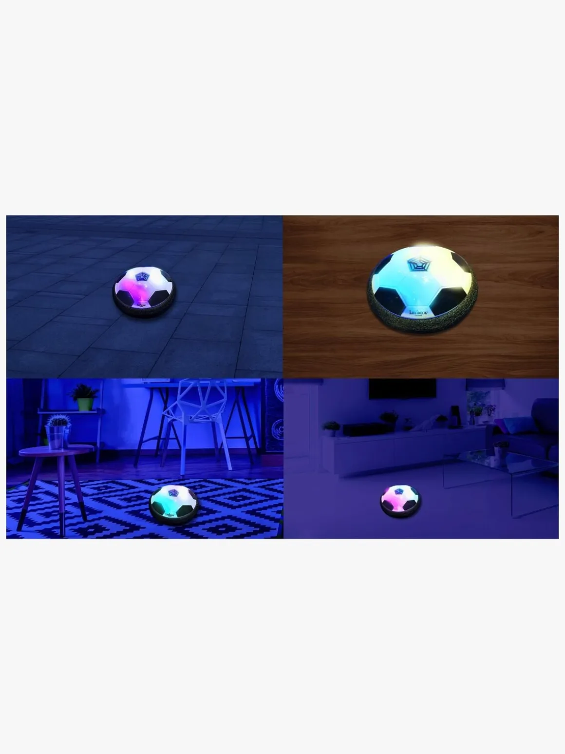 – Indeholder: 1 fodbold-disc, 2 mål, 1 oppustelig bold, 1 pumpe, 1 USB-kabel.