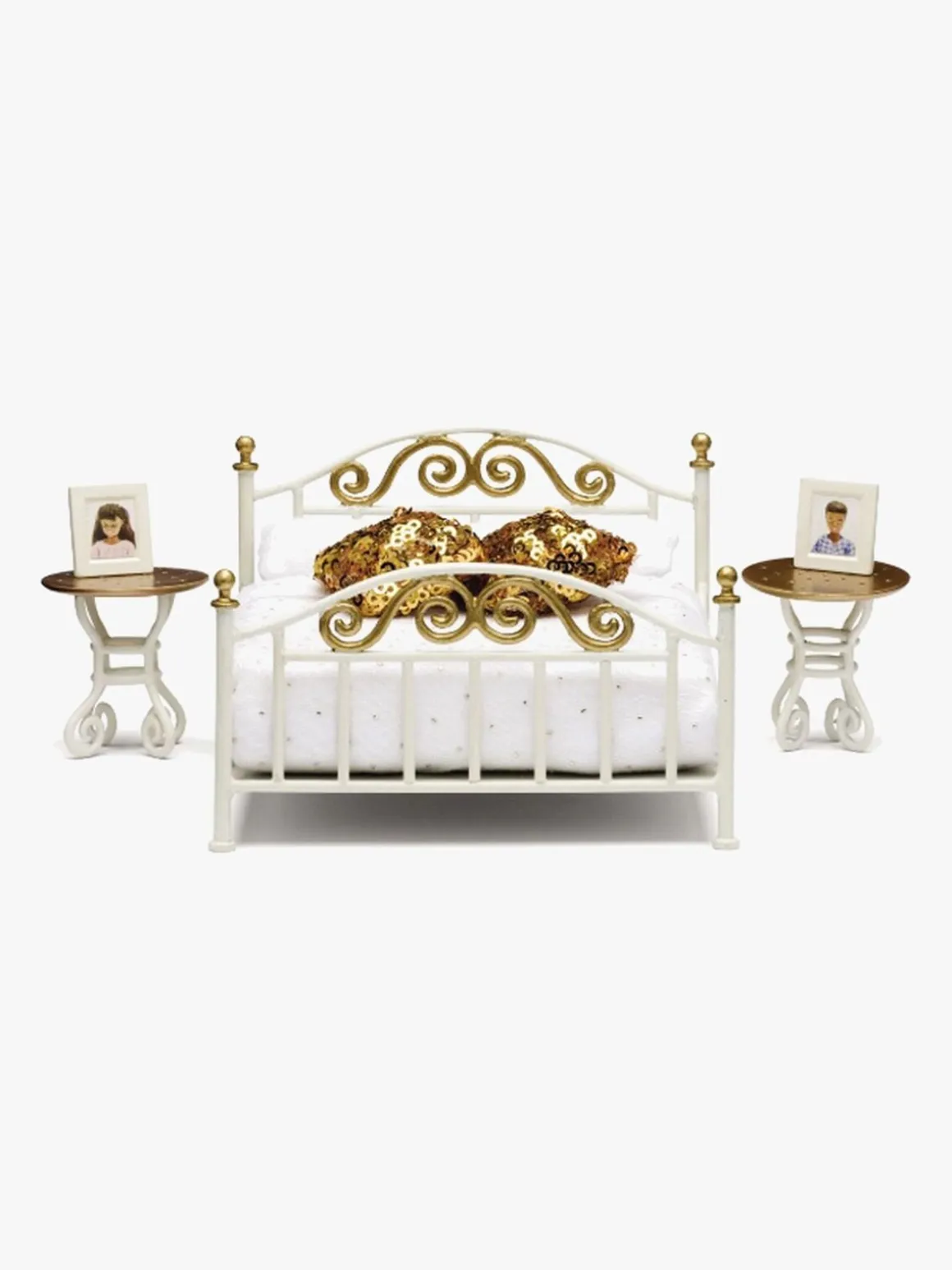 Desuden medfølger en bog, to fotorammer, et lagen og hovedpuder.