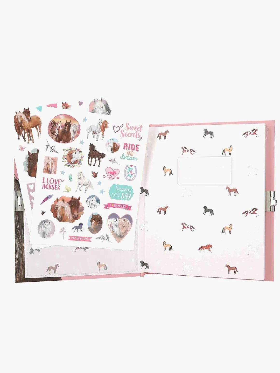 – Indeholder: 1 dagbog, 1 hængelås med nøgle, 2 ark med klistermærker.