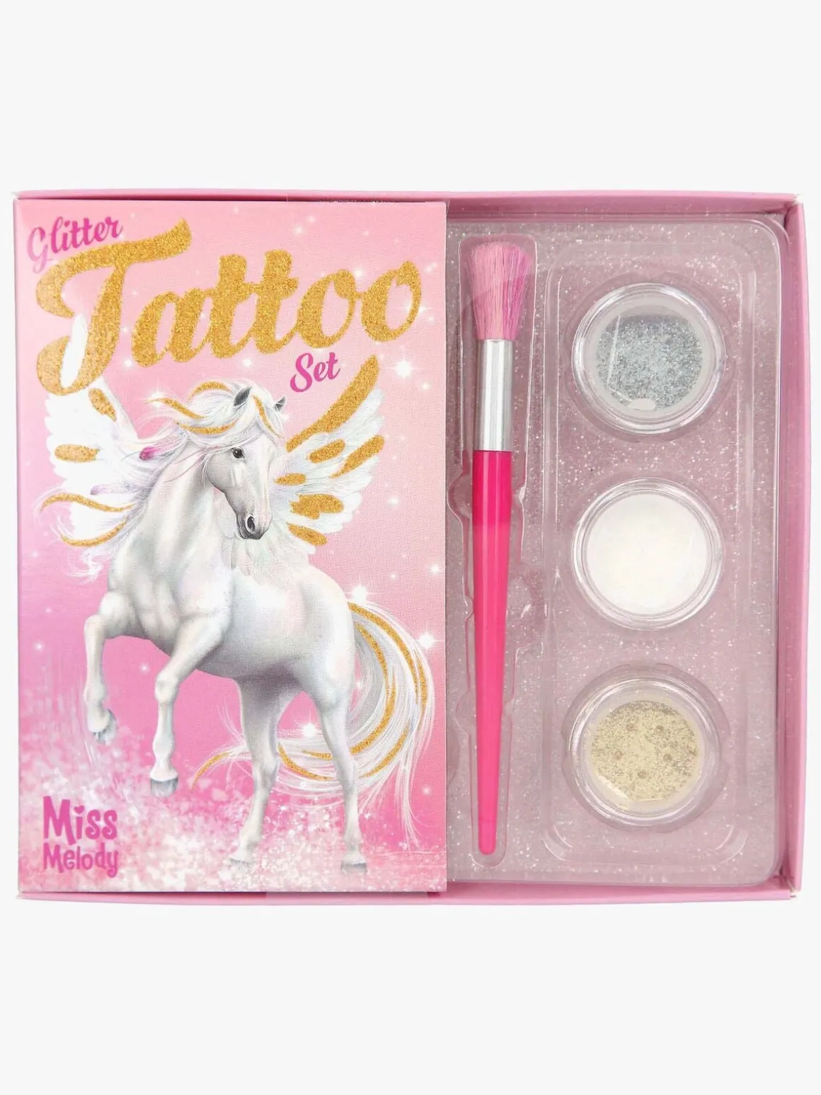 – Indeholder: 38 selvklæbende tatoveringer, 3 glitterfarver, 1 børste, 1 inspirationsbog.