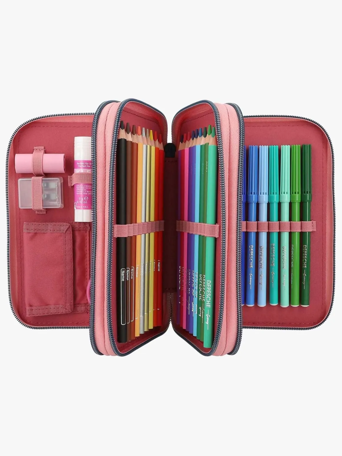 – Leveres med 18 farveblyanter, 18 markers, blyant, viskelæder og en masse andet sjovt tilbehør.