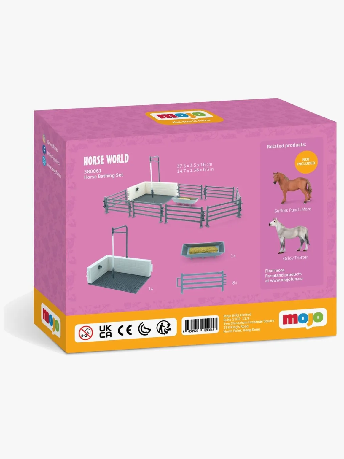 – Indeholder: 8 hegnstykker, 1 hestebad, 1 food feeder.