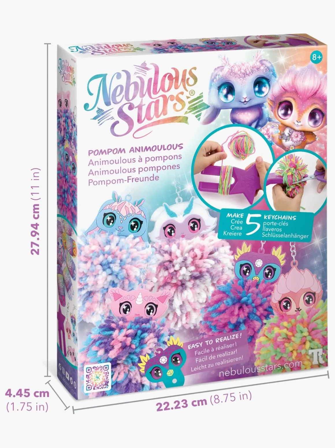 – Indeholder: 5 nøgleringe, 5 garner, 1 værktøj, 1 instruktionsbog.