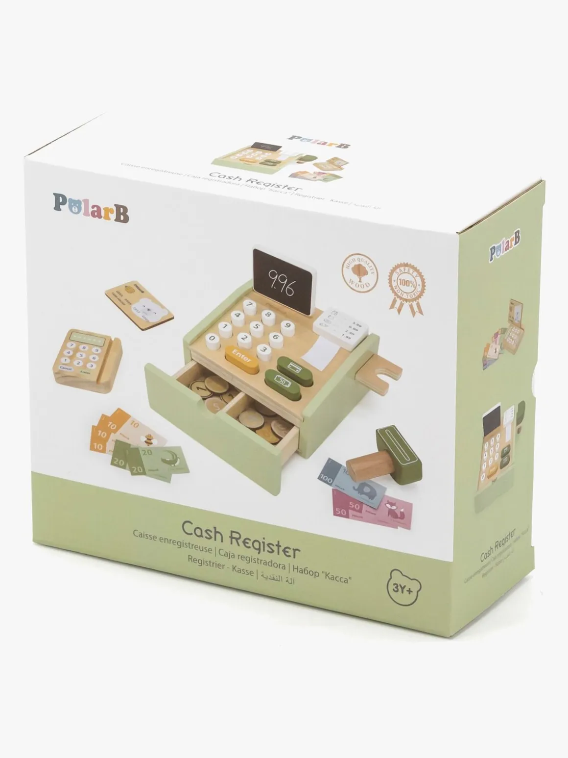 – Indeholder: 1 kasseapparat, 1 scanner, 1 kortlæser, 1 kreditkort, 8 legetøjspengesedler, 14 legetøjsmønter.