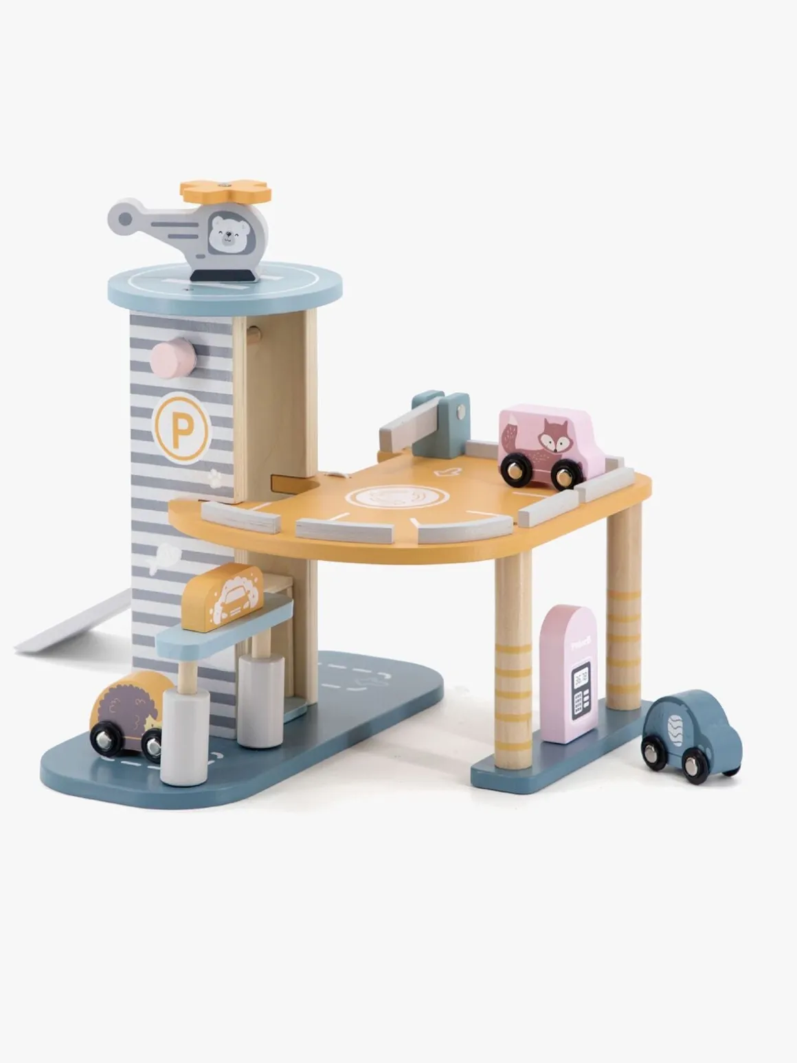 – Indeholder: 1 parkeringshus, 3 biler, 1 helikopter.