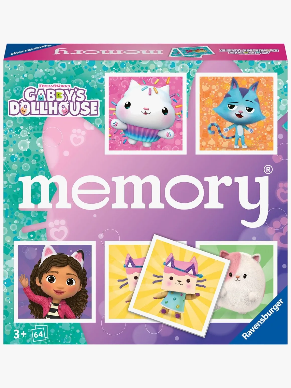 – 64 kort med Gabby’s Dollhouse-motiver.