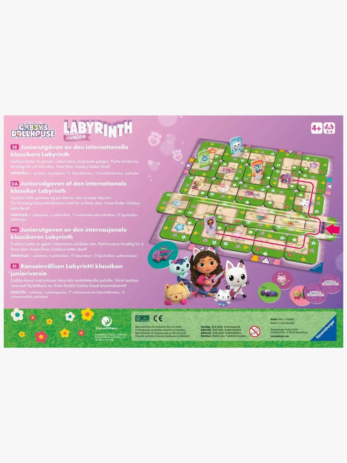 – Indeholder: 1 spillebræt, 17 labyrintkort, 12 billedkort, 4 spillebrikker, 1 brugsvejledning.