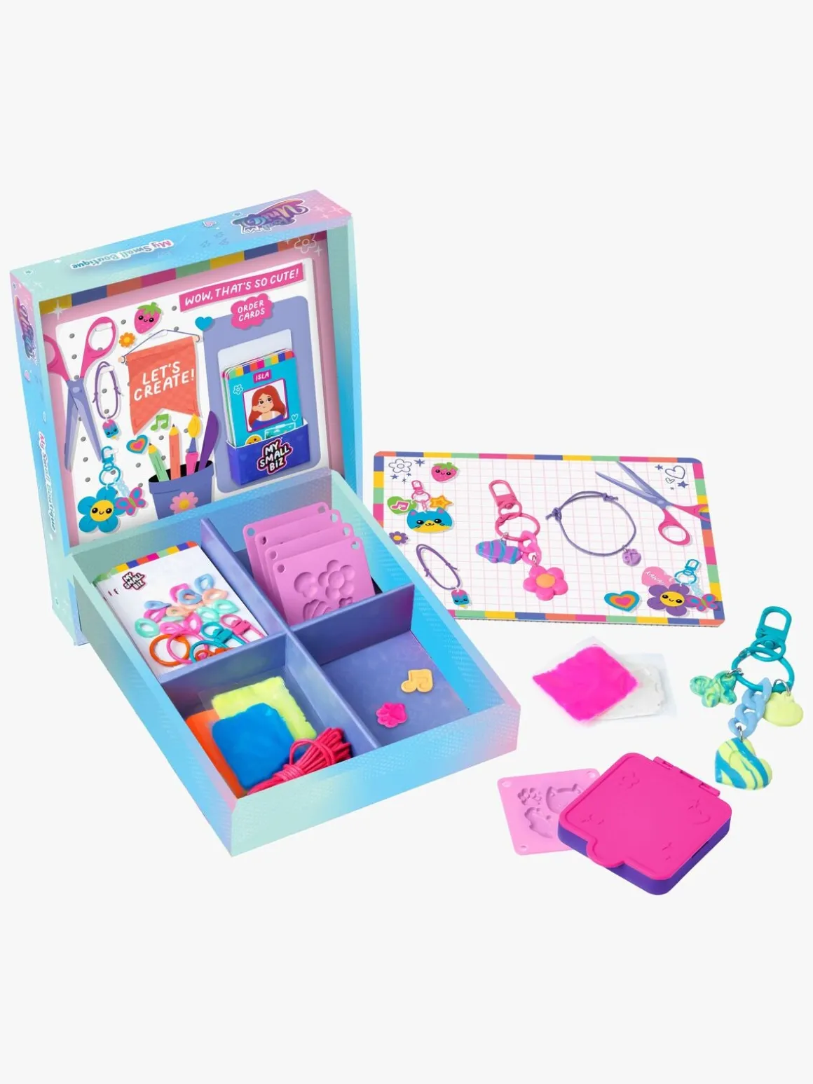 – Lav 12 nøgleringe, taskevedhæng, badges og armbånd.