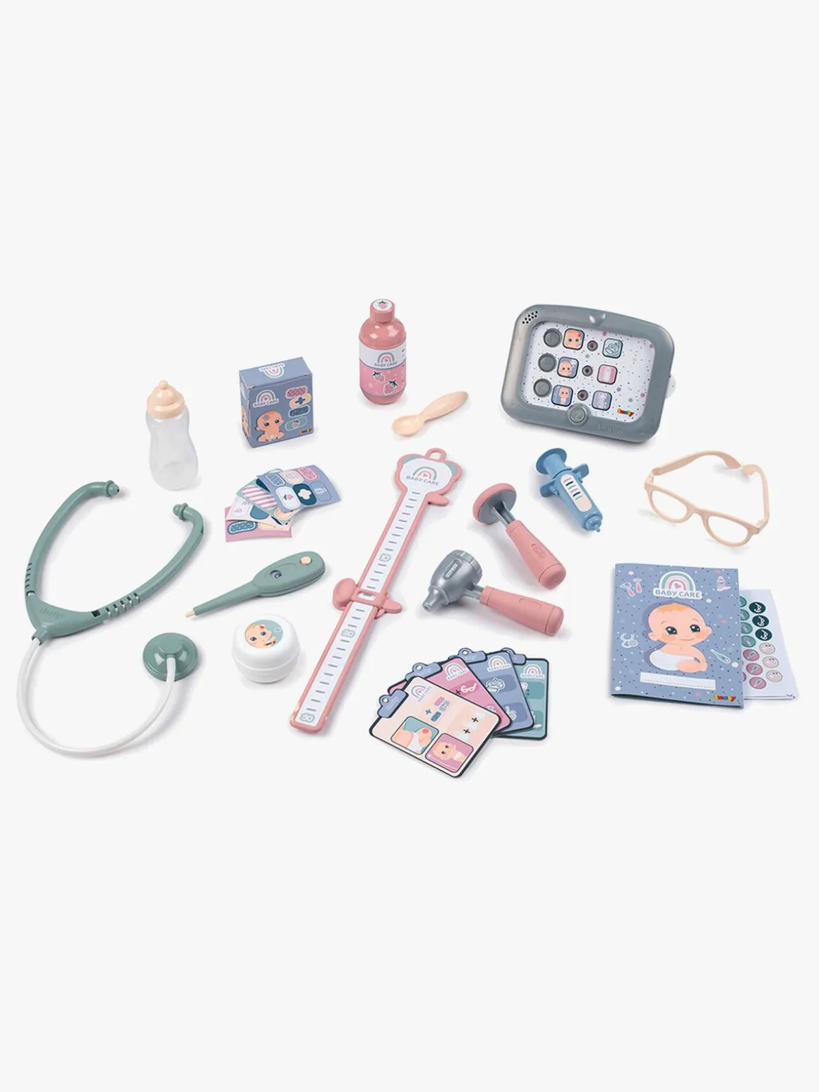 – Indeholder: 1 vægt, 1 stetoskop, 1 termometer, 1 reflekshammer, 1 førstehjælpskasse, 1 otoskop, 1 sundhedsjournal, 1 lægekontor.