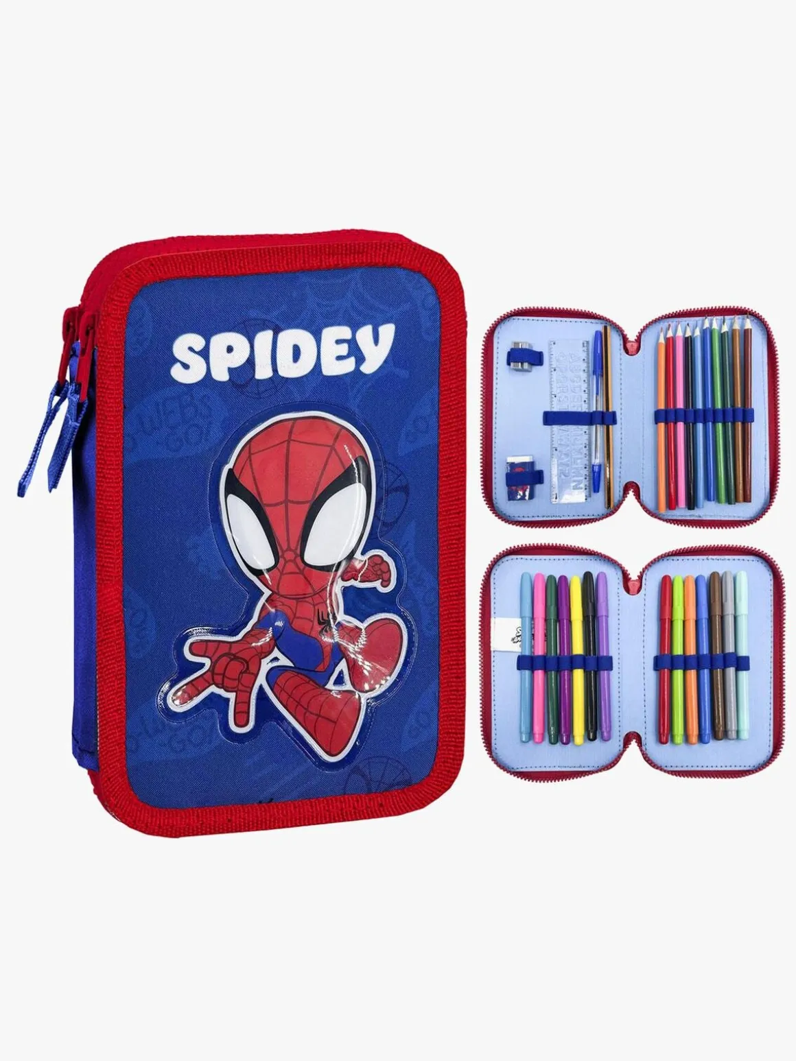 – Indeholder: 1 penalhus, 10 farveblyanter, 14 filttusser, 1 viskelæder, 1 blyantspidser, 1 kuglepen, 1 blyant, 1 lineal.