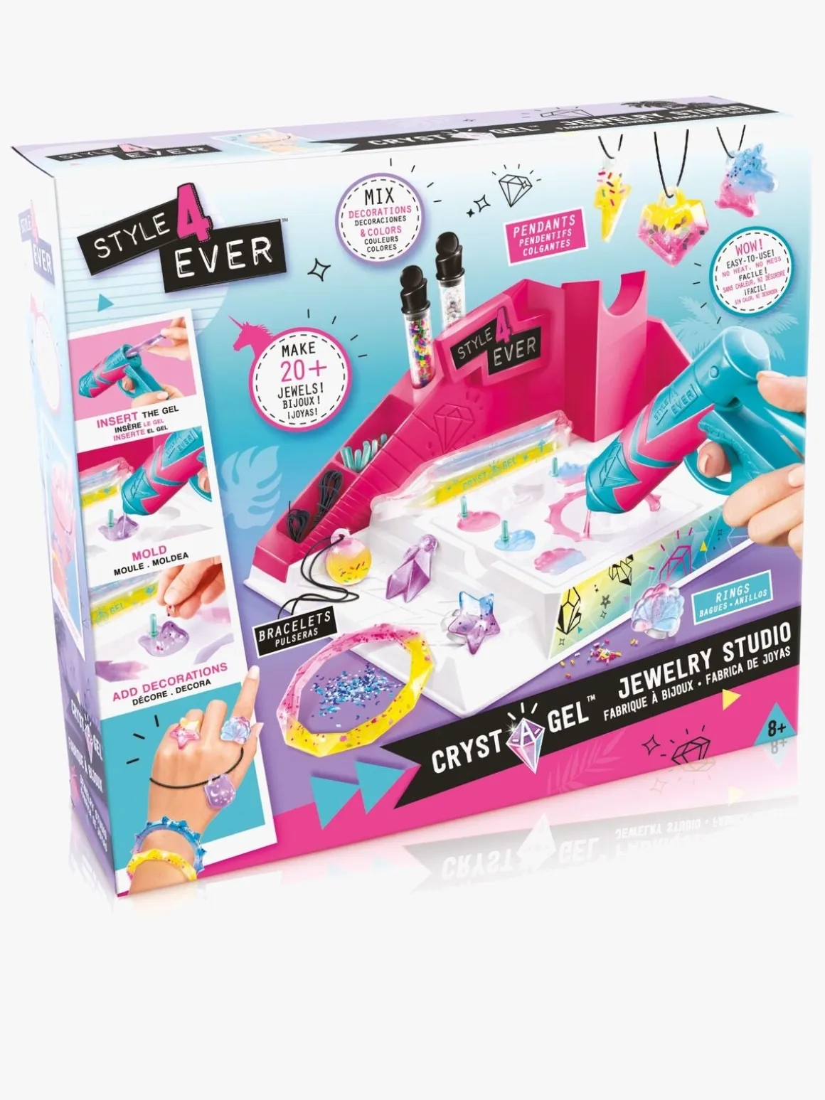 – Indeholder: 1 gelépistol, 6 gelépakker, 6 dekorationssæt, 2 ringe, 1 værktøj, 2 tuber, 1 snøre.