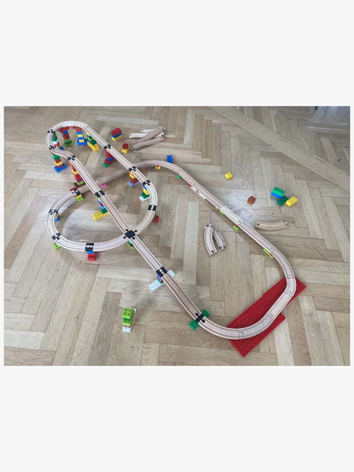 – OBS: Træskinnerne og byggeklodserne medfølger ikke.
