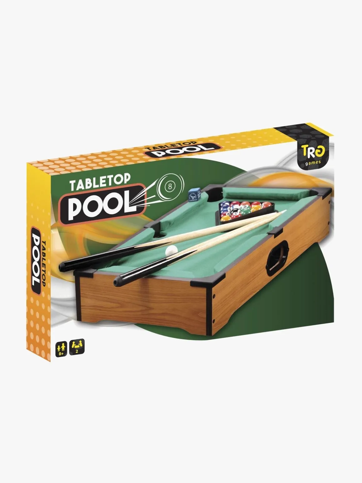 – Inkluderer: billardbord, 2 spillekøer, kugler, kugletrekant, farvekridt.