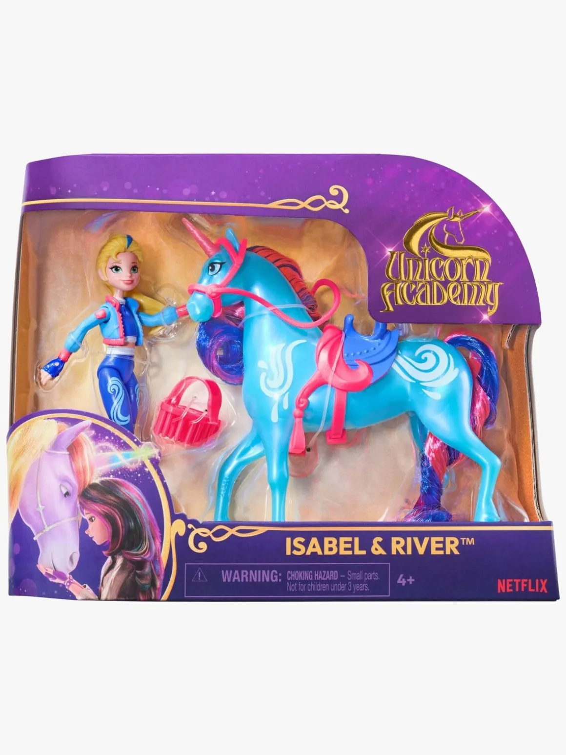 – Indeholder: 1 dukke, 1 enhjørning, 1 børste, 1 sadel, 1 hovedtøj.